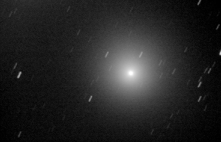 La comète C2004/Q2 (Machholz) - 19 décembre 2004, 22h20 TU, Etréchy (91), France. Nexstar 5i (SCT 127 mm), réducteur 3.3 Meade, webcam Vesta Pro SC2/NB (SC1 + coupure pré-ampli + capteur N&B) en mode RAW, filtre LPR Celestron. Compositage de 65 clichés posés 10 secondes. Image à 75% de sa taille d'acquisition. Acquisition et traitement: Astrosnap, Iris et Photoshop.