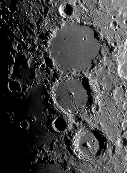 Le trio Ptolemaeus, Alphonsus et Arzachel constitue la frontière nord-est de la Mer des Nuées.